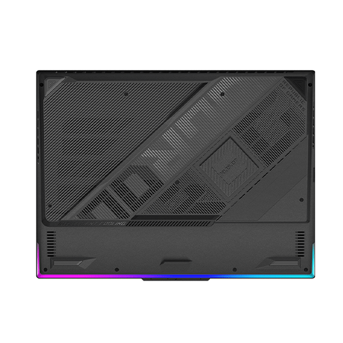 Bề mặt vỏ của laptop được làm bằng nhựa cứng với họa tiết kim loại, tạo nên vẻ ngoài đầy chất lượng và sang trọng. Logo ROG của ASUS được khắc nổi bật ở phía sau, tạo điểm nhấn độc đáo cho sản phẩm.