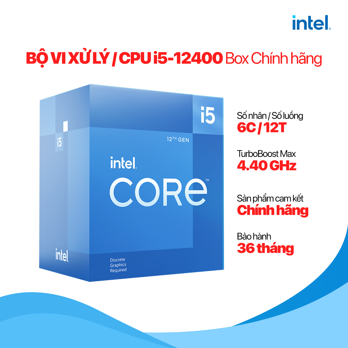 CPU INTEL Core i5-12400 có thiết kế 6 nhân 12 luồng, hiệu suất cực kì tốt tạo nên khả năng đa nhiệm với tốc độ xử lý vượt bật các trò chơi cao cấp và các ứng dụng đòi hỏi khắt khe nhất.