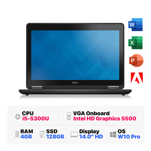 Dell Latitude E7450 : i5-5300U | 4GB RAM | 128GB SSD | HD Graphics 5500 | 14.0 HD | Weight 1.6KG | Windows 10 Pro | Black