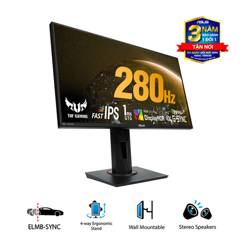 | Màn hình / LCD | 24.5 inch FHD (1920 x 1080) IPS 16:9, 400nits, 400cd/㎡, 16.7 triệu màu, 1000:1, 280Hz, 1ms, GSync + DisplayPort 1.2 x 1 HDMI(v1.4) x 1 Jack 3,5 mm |