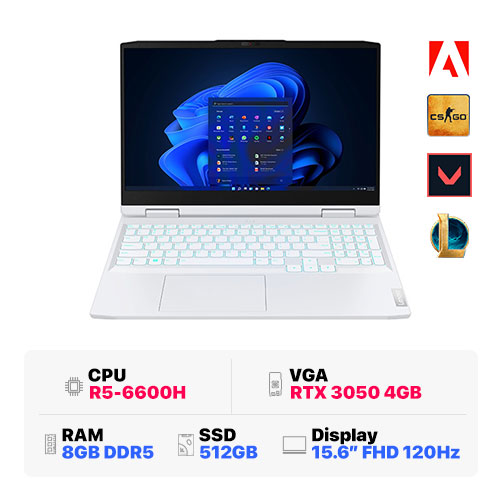 Lenovo IdeaPad Gaming 3 15ARH7 82SB007JVN: R5-6600H | 8GB RAM | 512GB SSD | GeForce RTX 3050 4GB | 15.6 inch FHD 120Hz | Win 11 | Glacier White