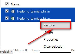 Bước 2: Click chọn vào file cần khôi phục => nhấn khôi phục để Onedrive tiến hành Restore file về vùng chứa trước khi xóa trên Onedrive.