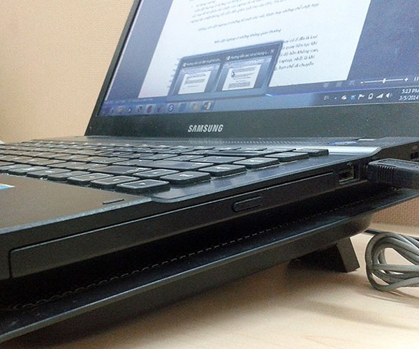 Khi sử dụng máy ở nhà, bạn không nên để máy trên giường đệm, bởi vì những khe thoát khí trên máy có thể bị che đi làm cho nhiệt lượng không được tỏa ra. Từ đó máy dễ sinh ra những bệnh “kỳ quái” như hay treo, tự tắt, chạy không ổn định… Để giúp ích cho tỏa nhiệt khi để máy trên bàn bạn hãy tạo một khoảng trống giữa máy và mặt bàn để cho việc tản nhiệt của máy được tốt hơn. Tốt nhất nếu có thể bạn hãy mua một cái máy tản nhiệt làm mát cho laptop giúp máy ổn định nhất.