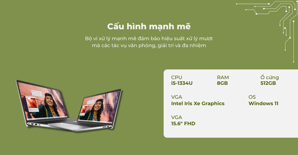Dell Inspiron 15 3530 là một lựa chọn hoàn hảo cho những ai tìm kiếm một chiếc laptop hiệu năng cao, phù hợp cho các tác vụ văn phòng, học tập và giải trí. Trang bị vi xử lý Intel Core i5-1334U kèm RAM 8GB và ổ cứng SSD 512GB, Dell Inspiron 15 3530 đảm bảo hiệu suất mạnh mẽ, màn hình 15.6 inch Full HD 120Hz mang lại trải nghiệm hiển thị mượt mà, rõ nét.