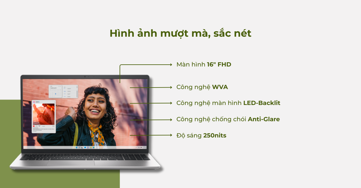 Màn hình 15.6 inch Full HD (1920 x 1080) với tần số quét 120Hz mang đến hình ảnh mượt mà, sắc nét, góc nhìn rộng. Điều này rất hữu ích cho những ai thường xuyên làm việc với hình ảnh, video hoặc chơi game.