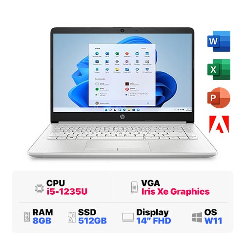 HP 14s-dp5054TU 6R9M7PA : i5-1235U | 8GB RAM | 256GB SSD | Intel Iris Xe Graphics | 14 inch HD | Windows 11 | Silver