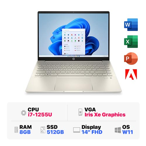 HP Pavilion 14-dv2032TU 6K768PA : i7-1255U | 8GB RAM | 512GB SSD | Intel Iris Xe Graphics | 14 inch FHD | Windows 11 | Warm Gold