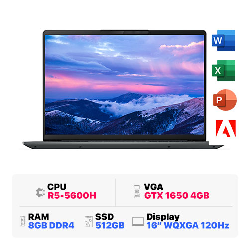 Lenovo IdeaPad Slim 5 Pro 16ACH6 82L50097VN : R5-5600H | 8GB RAM | 512GB SSD | AMD Radeon Graphics + GTX 1650 4GB | 16.0 WQXGA 120Hz | Win 10 | Storm Grey