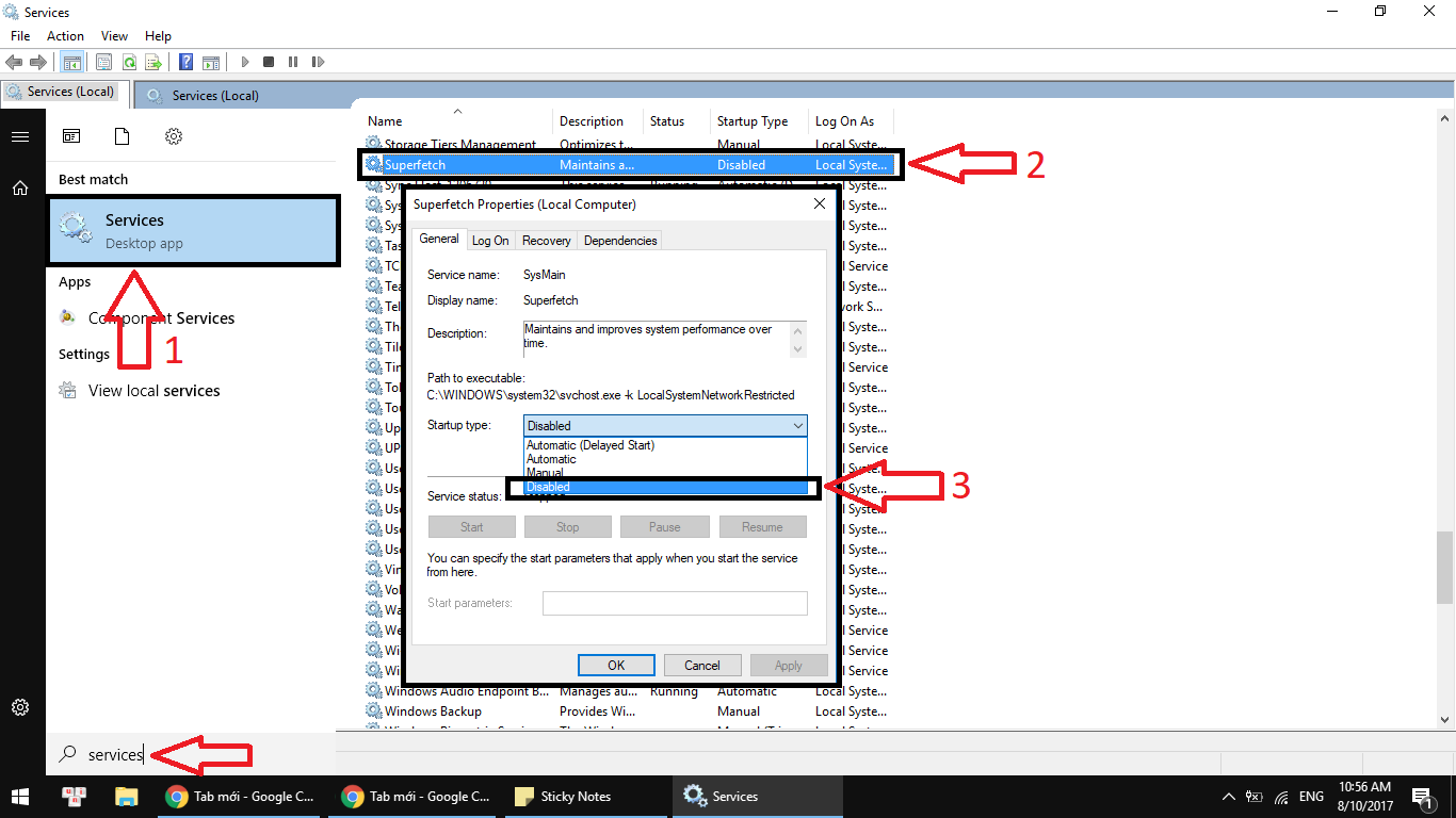 Cách 6 : Tắt các dịch vụ không cần thiết trong Setting Windows